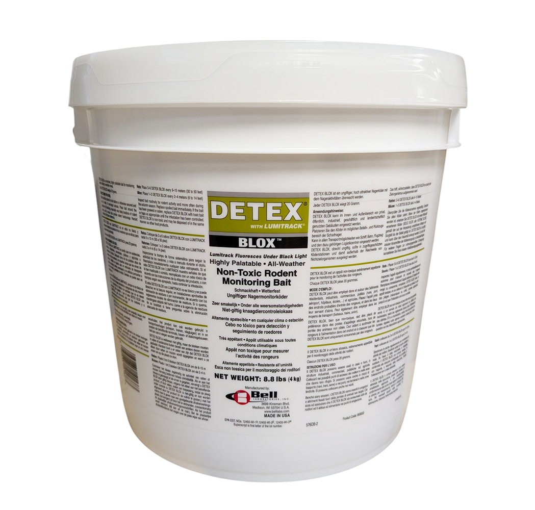 Ce produit tue-t-il les souris et les rats ? Non, le Detex Blox est un appât de surveillance (monitoring). Il ne contient aucun poison. Son but est de confirmer la présence de rongeurs et de les localiser pour mieux les piéger ensuite.