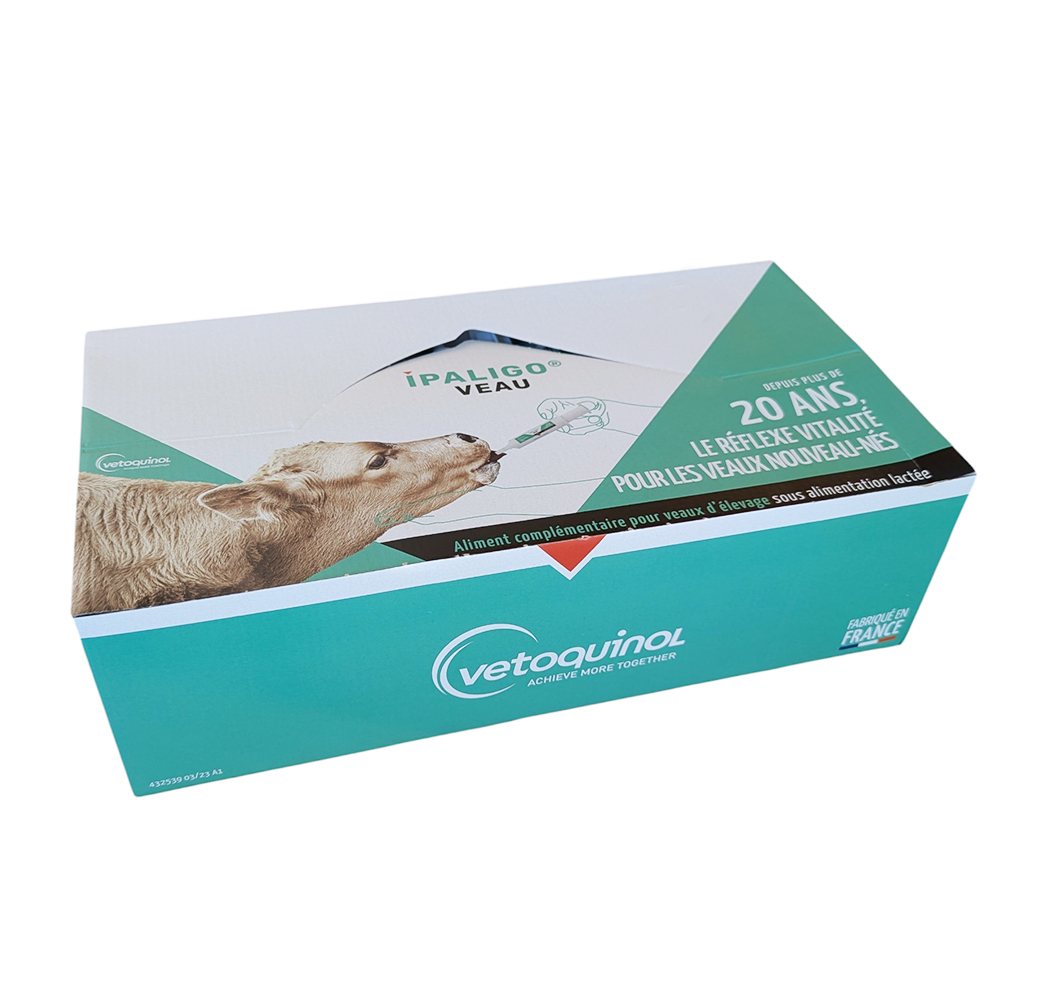 IPALIGO Veau est la référence incontournable pour le démarrage des veaux. Ce complément alimentaire, présenté sous forme de seringue orale pratique, est conçu pour apporter un "réflexe vitalité" immédiat aux nouveau-nés. Formulé par le laboratoire Vetoquinol, il soutient les veaux d'élevage sous alimentation lactée dès les premières heures de vie.