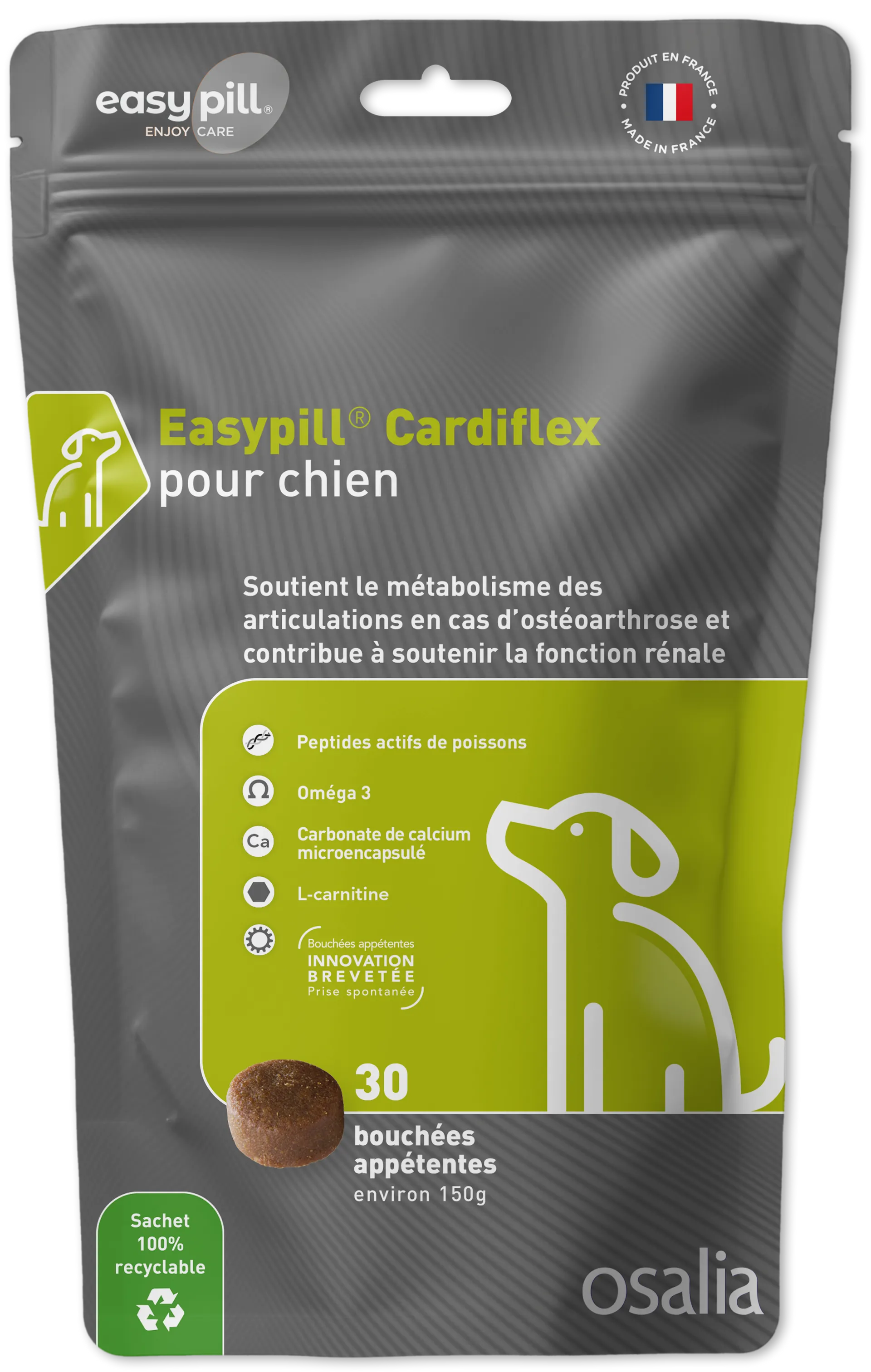 Est-ce que ça remplace l'Easypill Articulations ? Si votre chien n'a que de l'arthrose, Easypill Resolvin Articulations est plus spécifique. Si votre chien est âgé et que vous voulez protéger ses reins en plus de ses articulations, Cardiflex est le meilleur choix préventif global.