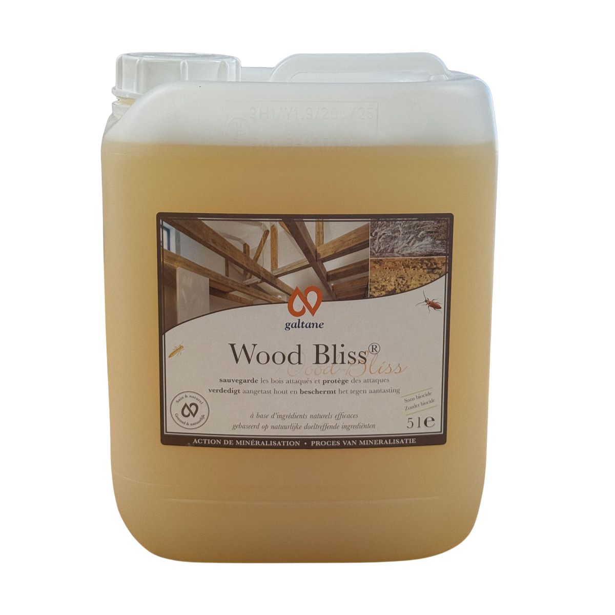 Fini les produits toxiques pour traiter votre charpente ou vos meubles ! Wood Bliss de Galtane offre une efficacité redoutable grâce à un procédé physique unique : il modifie la structure du bois en le minéralisant. Le bois devient alors "immangeable" pour les parasites et les champignons, tout en étant consolidé.