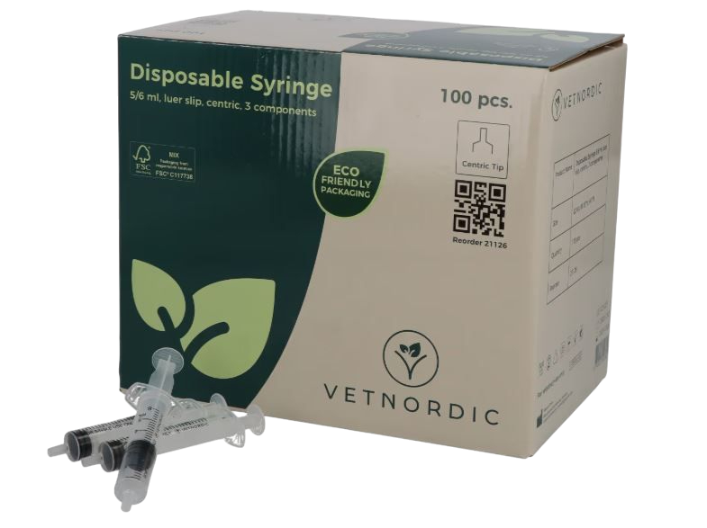 Les Seringues VetNordic 5/6 ml représentent le format le plus polyvalent en médecine vétérinaire courante. Dotées d'un embout central pour une meilleure stabilité et d'une conception "3 pièces" (avec joint), elles garantissent des injections intramusculaires ou sous-cutanées fluides et maîtrisées. Graduation étendue à 6 ml pour plus de flexibilité.
