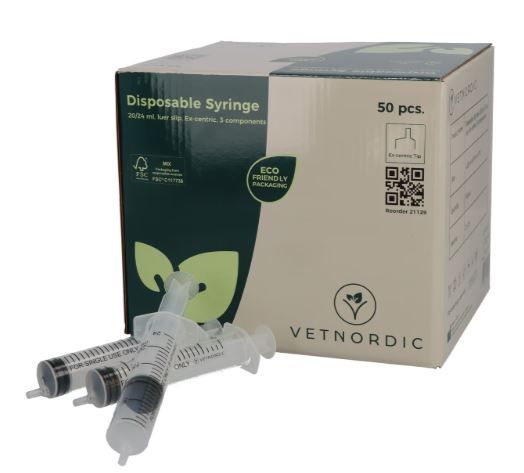 Les Seringues VetNordic 20/24 ml sont le format intermédiaire idéal pour les soins courants. Dotées d'un embout excentré (décalé) et d'une capacité étendue à 24 ml, elles facilitent les injections intraveineuses en permettant une approche tangentielle à la peau. Leur piston "3 pièces" avec joint assure une manipulation souple et sans à-coups.