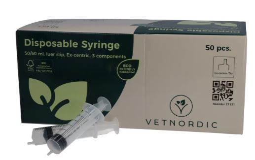 La seringue de 60 ml VetNordic est un outil polyvalent de grande capacité. Grâce à son embout excentré (décalé) et sa conception 3 composants (avec joint), elle offre une précision remarquable pour les injections intraveineuses à plat, le gavage des animaux ou le lavage de plaies.