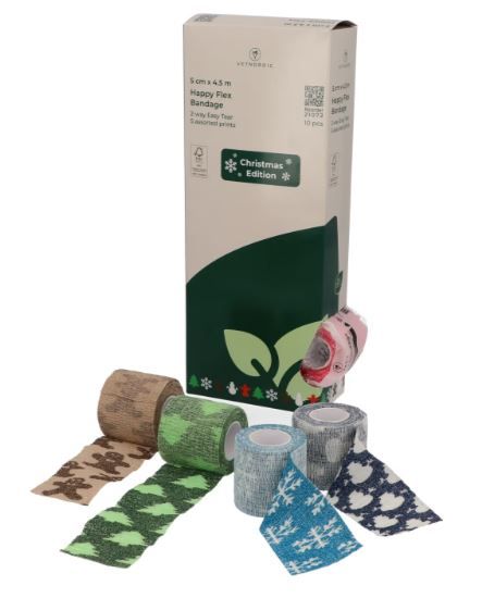 Le Happy Flex Bandage XMAX (5 cm) est la bande cohésive idéale pour les "petites pattes". Avec sa largeur de 5 cm, elle s'ajuste parfaitement aux membres fins des chats, chiots, lapins ou cochons d'Inde. Cette édition de Noël propose des motifs festifs (Flocons, Bonhommes de neige...) tout en offrant la technologie professionnelle "2-way Easy Tear" : une découpe nette à la main, sans ciseaux, pour une pose rapide et sécurisée.